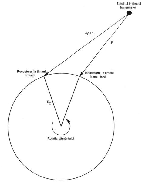 Datorita rotatiei Pamantului in timpul transmisiei semnalului, eroarea relativista introdusa este data de efectul Sagnac.