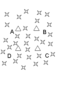 Pentru a determina coordonate in sistemul national se utilizeaza parametri de transcalcul. In Capitolul 7 sunt prezentati pasii care trebuie parcursi pentru a determina cei 7 paremtri Helmert. Desigur, exista algoritmi care pot utiliza un numar mai mare de parametri, dar algoritmul cu 7 paramtri este cel mai utilizat in practica. Pentru a obtine acesti parametri este nevoie de minim 3 puncte cu coordonate in ambele sisteme: WGS84 si Stereografic 1970. De fapt, la limita, este nevoie de doua puncte care sa aiba corespondenta pe fiecare coordonata in parte (X, Y si Z) si un punct care sa aiba corespondenta doar pe o coordonata (X, Y sau Z). Astfel, se pot scrie 7 ecuatii din care rezulta cei 7 parametri Helmert de transformare. Pentru a avea un control, in practica se utilizeaza minim 4 puncte cu coordonate comune: Stereografic 1970 si WGS84. Punctele comune trebuie sa fie astfel distribuite incat sa acopere integral zona in care se vor transcalcula punctele determinate GPS. In figura 6 a este prezentat modul ideal de distributie a punctelor comune (A, B, C si D) in raport de punctele determinate GPS. In figura 6 b este prezentata o distributie defectuoasa a punctelor comune (A, B, C si D) in raport de punctele determinate GPS. Se vehiculeaza frecvent ideea ca masuratorile GPS si implicit prelucrarile nu pot fi gresite. Este complet fals. Masuratorile nu pot fi gresite, desigur, decat daca geometria satelitilor era proasta, nu s-au rezolvat ambiguitatile, au fost schimbate frecventele, etc. Practic, receptoarele GPS creaza niste fisiere de date (se poate face analogie cu statiile totale care inregistreaza distante inclinate, directii si unghiuri zenitale) brute. Din acestea, cu programe de firma, se pot determina coordonate in sistem WGS84. Aceste coordonate sunt bune si, desigur, daca se pastreaza principiul determinarii cel putin din doua puncte vechi, independente, avem si control si precizia determinarii. Defectuoasa este trecerea in sistem Stereografic 1970. Daca se utilizeaza o configuratie ca cea din figura 6 b, atunci punctele transcalculate pot avea diferente mari fata de valoarea reala absoluta.