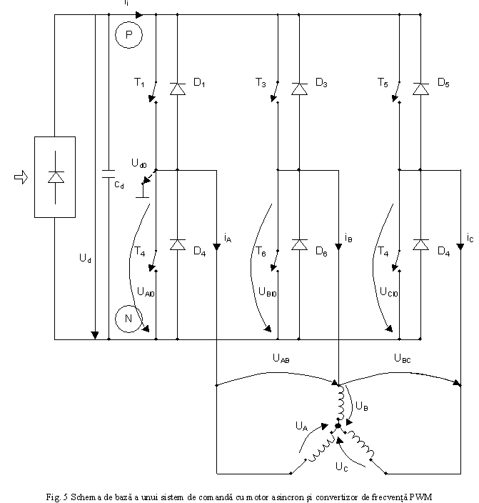 Sistemul de comanda prin convertizor de frecventa cu circuit intermediar de tensiune constanta este dat in figura 5.