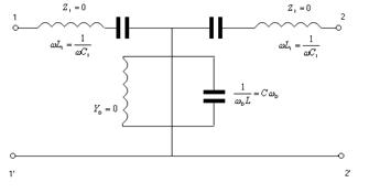 conditia (18.24) conduce la urmatoarele conditii echivalente : Y0 = 0 si Z1 = 0 , respectiv Z0 = 0 si Y1 = 0 , adica aceste conditii pot fi indeplinite numai pentru cuadripoliformati exclusividin elemente reactive acordate la rezonanta (fig.5) .