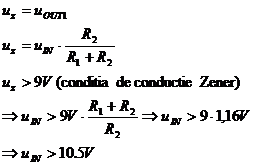 Pentru a conduce Zener este necesar ca tensiunea pe dioda sa fie mai mare decat uZ (9V). Din figura 1b se poate scrie:
