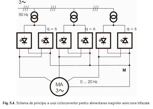 cicloconvertor pentru alimentarea masinilor asincrone trifazate. Pe fiecare