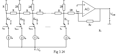 Un astfel de convertor este realizat din N surse de curent avand curentii de valori ponderate binar si are structura prezentata in figura 3.26.