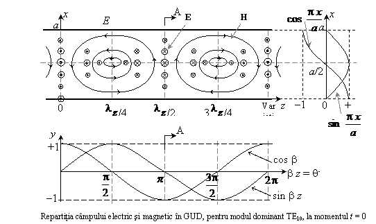 Se impun conditiile la limita, la peretii ghidului. Componenta de repartitie transversala a campului magnetic nu poate avea componente normale la peretii ghidului: