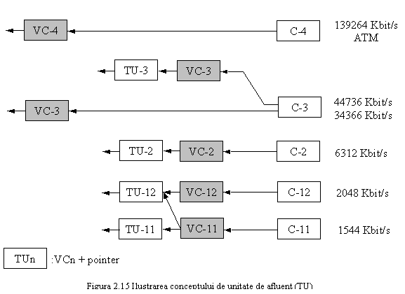 Aceste variante de transmisie erau economice la distante mici de transmisie (8-80 km). Odata cu cresterea volumului de date vehiculat in format digital (date, voce, imagini, video, etc.) au fost necesare standarde care definesc nu numai procesul de conversie analog/digitala a semnalelor ci si organizarea, structura si formatul grupurilor de multiplexare precum si caracteristicile interfetei cu reteaua de transmisiuni. Ierarhia nord-americana are o structura destul de neregulata (Fig. 2.3).