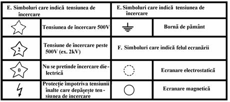 La marcarea aparatelor de masura se utilizeaza semnele grafice standardizate reprezentate in tabelul 2.1.