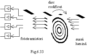 Circuitele asociate discului trebuie sa contina un numarator care sa ofere o iesire numerica, intr-un anume cod, in functie de incrementii generati de disc. De asemenea este necesar sa indice sensul de rotatie, care nu apare in informatia data la numarator. Discurile codate pot fi realizate fie prin transparenta (procedeu diascopic) fie prin reflexie (procedeu episcopic).