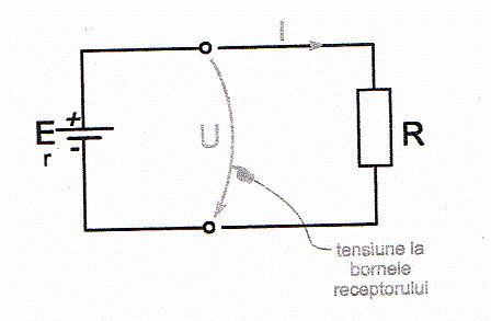 In c.c,puterea este debitata de sursa si este absorbita de un receptor.Puterea electrica debitata de sursa E este