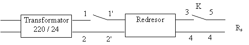 * intre punctele 5-4, cu comutatorul K deschis, valoarea Rs.