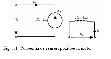Ecuatiile de functionare ale motorului de curent continuu in regim dinamic sunt (fig. 1.1):