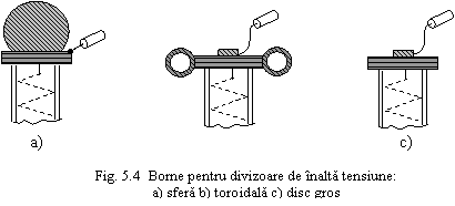 Pentru limitarea efectului corona, bornele de intrare se fac in forma de sfera (fig.5.4, a), sub forma toroidala (fig.5.4, b) sau forma de disc gros cu margini rotunjite (fig.5.4, c).
