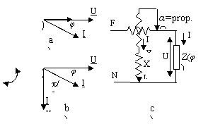 Fig. 14 Principiul a,b) diagrame fazoriale c) schema