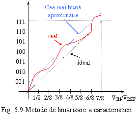 Prima metoda nu tine cont de erorile de decalaj sau de castig ci masoara in fractiuni de LSB deviatia caracteristicii de la forma ideala de dreapta.
