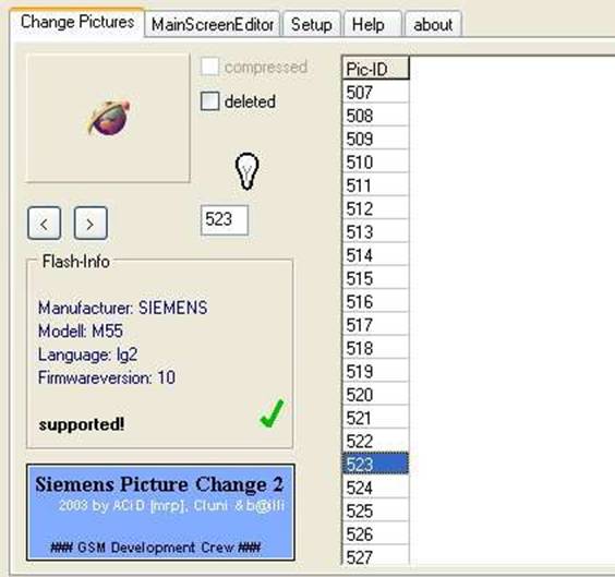 Apasati pe butonul 'Read Memory' si pe urma asteptati pana cand V-Klay va citi memoria telefonului (aproximativ 15 minute). Pe urma apasati butonul 'Save File ' pentru a salva memoria telefonului pe calculator.Dupa aceasta porniti telefonul. Acum porniti programul Siemens Picture Changer 2. Acest program nu foloseste telefonul si de aceea deconectati cablu de la telefon pentru a folosi programul.