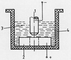1 - bloc semifinit; 2-5 - electrozi; 6 - piesa finala; 7 - electrolit