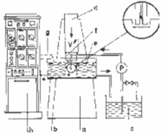 d) electrod-scula; e) grup dielectric; f) filtru; g) piesa de prelucrat.