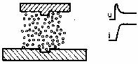 In Fig. 2, este prezentat schematic acest fenomen. In primele sutimi sau zecimi de s ale descarcarii intre electrozii E si PP, se constituie un canal ionizat din plasma fierbinte (b), constituita ca urmare a socurilor violente pe care le suporta piesa de prelucrat PP.