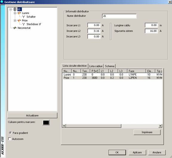 Pentru orice modificare adusa sistemului de circuite electrice dati clic pe butonul "Actualizare" si apoi clic pe butonul "Aplicare" si apoi "Ok".