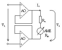 Fig.5.6. Schema de principiu a unui ampermetru electronic de c.c.