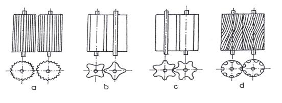 Latimea spatiului pentru zdrobire intre valturile profilate este putin mai mare decat cea dintre valturile netede sau striate, in timp ce alti parametri geometrici sunt aceiasi (diametral exterior, distanta intre axe).
