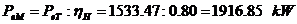 C.Calculul puterii la iesire din motor in cazul cunoasterii puterii la pompa de noroi: