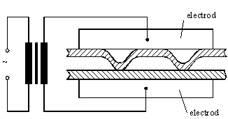 Schema de principiu a sudarii in relief este prezentata in Fig. . Punctele sudate se realizeaza simultan, curentul trecand intre piese prin proeminentele realizate pe una dintre ele.