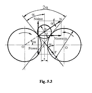 Greutatea proprie a materialului se considera neglijabila fata de cele doua forte mentionate mai sus. Conditia ca materialul sa nu iasa dintre cilindri este: