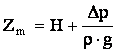 Ø Inaltimea manometrica, Zm, reprezentand inaltimea fictiva la care pompa ar putea sa ridice un lichid daca nu ar exista in circuit pierderi de energie datorate frecarilor, invingerii diferentei de presiune intre punctele de aspiratie si refulare, imprimarii unei anumite viteze lichidului. Zm se exprima in m.