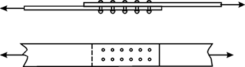 5.6. Determinarea numarului de nituri. La îmbinarea elementelor solicitate la întindere sau compresiune centrica se admite ca forta transmisa prin îmbinare se repartizeaza în mod egal tuturor niturilor. In aceasta ipoteza, numarul necesar de nituri, n, se determina împartind forta P care “traverseaza” îmbinarea la rezistenta R a unui singur mit: