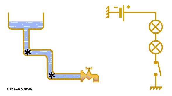 Tensiunea,denumita deasemenea diferenta de potential intre doua puncte dintr-un circuit electric, este comparabila cu inaltimea coloanei de apa sau cu presiunea intr-un circuit hidraulic.