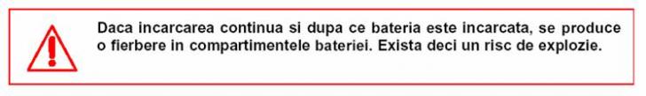 Din cauza prezentei substantelor active (gaze degajate), este recomandat a se evita utilizarea in proximitatea bateriei a punctelor calde (tigari, sudura, etc.) deorece exista risc de explozie.