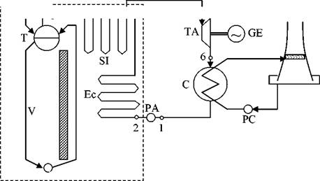 Ciclul de functionare al unei instalatii energetice cu abur este ciclul Clausius-Rankine. Scheme instalatiei este prezentata in figura 1, in timp ce in figura 2 sunt reprezentate fazele de realizare a acestui ciclu in coordonate T-s, deoarece in aceasta diagrama fazele de lucru apar nedeformate iar caldurile transferate apar ca simple suprafete.