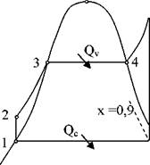 Procesul de vaporizare al apei in vaporizatorul cazanului, este reprezentat in diagrama T -s de izoterma 3 - 4, suprapusǎ cu izobara mǎrginitǎ de aceleasi puncte. Pe parcursul acestui proces, apa parcurge succesiv stǎrile lichid saturat (x=0, punctul3), vapori umezi (palierul orizontal 3 -4), vapori saturati uscati (x = 1, punctul 4). Vaporizarea este un proces obligatoriu pentru toate generatoarele de abur, care se desfǎsoarǎ, asa cum se stie, in conditii izoterme (T3 = T4) si izobare, la presiunea de functionare a cazanului (p3 =p4). Aria de sub curba transformǎrii 3-4, in diagrama T-s, reprezintǎ cǎldura de vaporizare introdusǎ in apa de cazan in scopul vaporizǎrii acesteia.