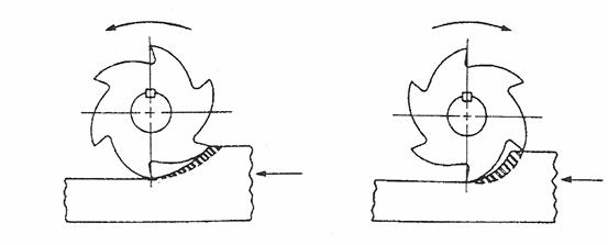 Fig. 3.28. Frezarea contra avansului si in sensul avansului