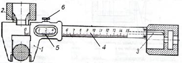 gradata; 5 - vernier; 6 - surub de fixare (blocare); 7 - suprafete