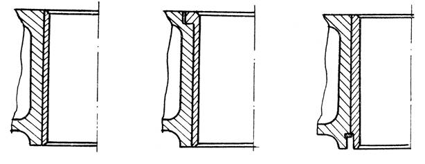 Fig.6.1. Camasa de cilindru umeda a) cu sprijin la partea superioara; b) cu sprijin la partea inferioara; c) cu sprijinul intr-o zona mediana |