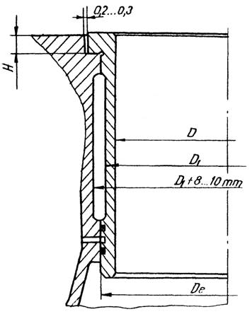 La proiectarea cilindrilor care se sprijina pe un guler la partea superioara, inaltimea H a gulerului camasii (fig.6.6) se considera desfasurata.
