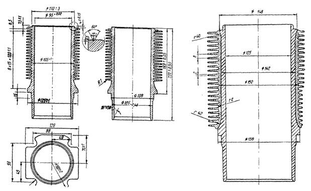 La proiectare se va adopta grosimea peretilor de (0,06.0,07)D. La partea de fixare in carter cilindrul este prevazut cu un guler avand latimea de (0,05.0,06)D iar sub guler diametrul exterior al cilindrului va fi mai mic cu 0,5.1,0 [mm]. La partea de asamblare cu chiulasa, grosimea peretelui cilindrului se va adopta cel putin (0,03.0,04)D iar inaltimea partii de centrare de 10.15 [mm].