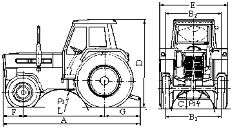 Fig.1.11. Dimensiunile principale ale tractoarelor pe roti.