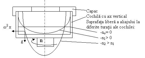 Schema turnarii centrifugale cu ax vertical este prezentata in figura 3.18. Suprafata libera a aliajului supus centrifugarii este un paraboloid.