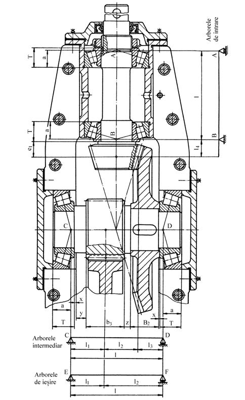 Alegerea montajelor cu rulmenti pentru toti arborii (pentru arborele de intrare, se alege montaj cu rulmenti radial-axiali cu role conice)