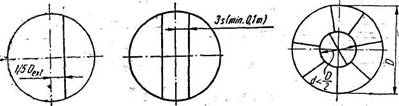 Fundurile elipsoidale realizate din doua bucati sudate de ambutisare ,vor avea cordonul de sudura dupa o coarda aaipla-sata la o distanta de centrul rondelei pentru fund de 1/5 din diametrul exterior al acesteia (fig, 1.13, a), pentru a se putea scoate cordonul de sudura in afara planului diametral in care eforturile sint maxime. In cazul in care rondela este executata din trei bucati, cordoanele de sudura vor fi amplasate dupa coarde paralele aflate la o distanta de cel putin ,3,grosimi de tabla (minim insa 0,1 m) fata de centrul fundului (fig. 1.13, b).