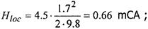> pierderi de sarcina locale (sunt datorate numarului de armaturi pe conducte, numarul coturilor, racordurilor, ce opun rezistenta la trecerea fluidului, obligand viteza sa-si modifice directia sau marimea). Ecuatia generala de calcul pentru pierderile de sarcina este:
