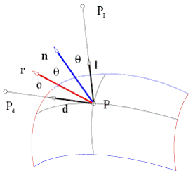 Felul in care un obiect reflecta lumina depinde de caracteristicile materialului la suprafata, de intensitatea sursei de lumina si de unghiul dintre directia sursei de lumina si normala la suprafata..