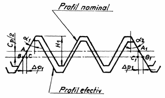 Se considera un filet real cu profil triunghiular simetric al carui unghi efectiv al profilului este mai mic decat unghiul nominal (fig. 6).